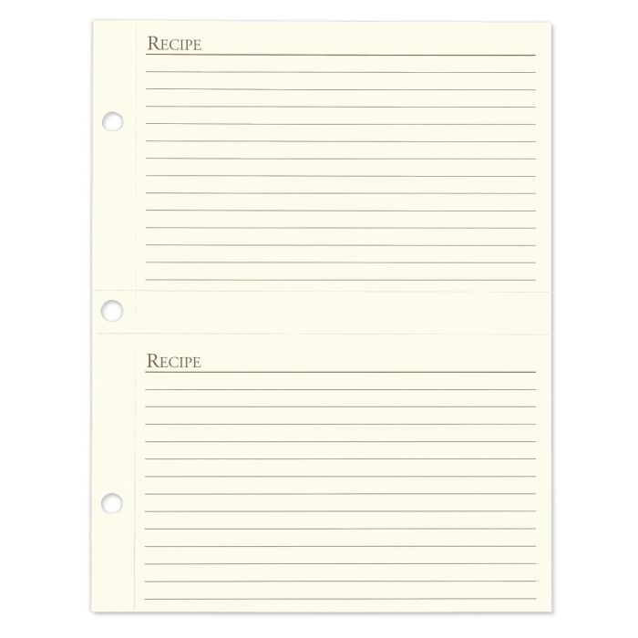 4" x 6" ruled recipe cards printed on acid-free, archival paper.